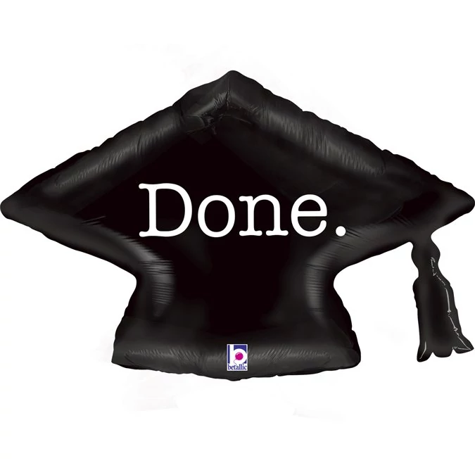 Csomagolatlan, 23 cm-es Done feliratú ballagós kalap alakú forma fólia lufi. Party Point üzletünkben történő személyes átvétel esetén, vagy Party Point weboldalon leadott megrendelés esetén a lufikat levegővel töltve, hegesztve, pálcával szállítjuk.
