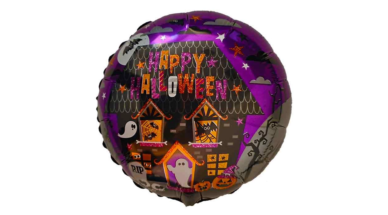 23 cm-es Halloween kísértetház fólia lufi. Ezzel a tréfásan kísérteties, halloween kísértetház fólia lufival feldobhatod a Halloween party dekorációt. Válassz hozzá pókos vagy szellemes fólia lufit, és biztosan eléred a várt hatást.
