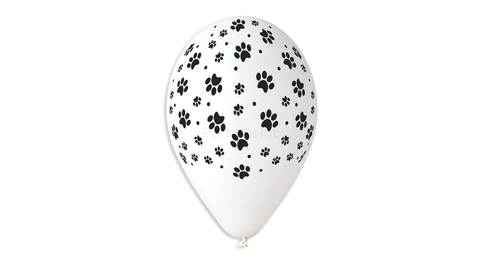 30 cm-es printelt léggömb állati tappancs mintával. A csomga 100 db léggömböt tartalmaz. Tölthető levegővel és héliummal egyaránt.