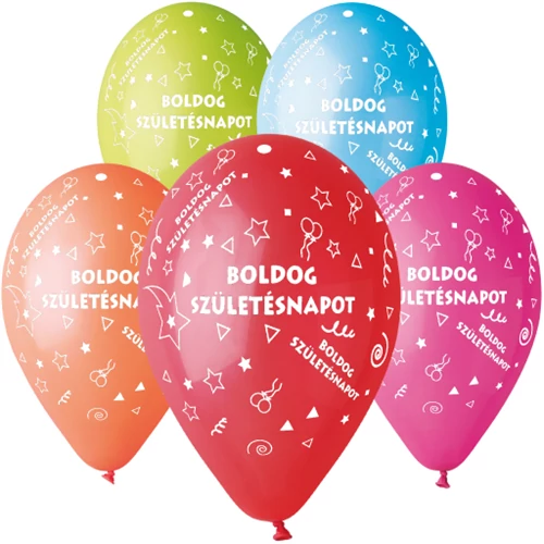 30 cm-es Boldog Születésnapot printelt gumi léggömb - 10 db / csomag. Dobd fel a születésnapi dekorációt ezzel a vidám, "Boldog születsénapot" feliratú gumi lufival. Kiegészítésként válassz mellé alkalomhoz illő zászlókat vagy feliratokat! Héliummal és levegővel is tölthető.