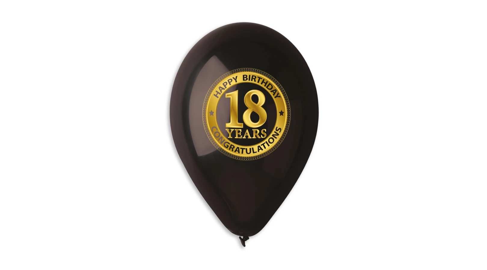 30 cm-es fekete 18. születésnapra gumi léggömb, 100 db.