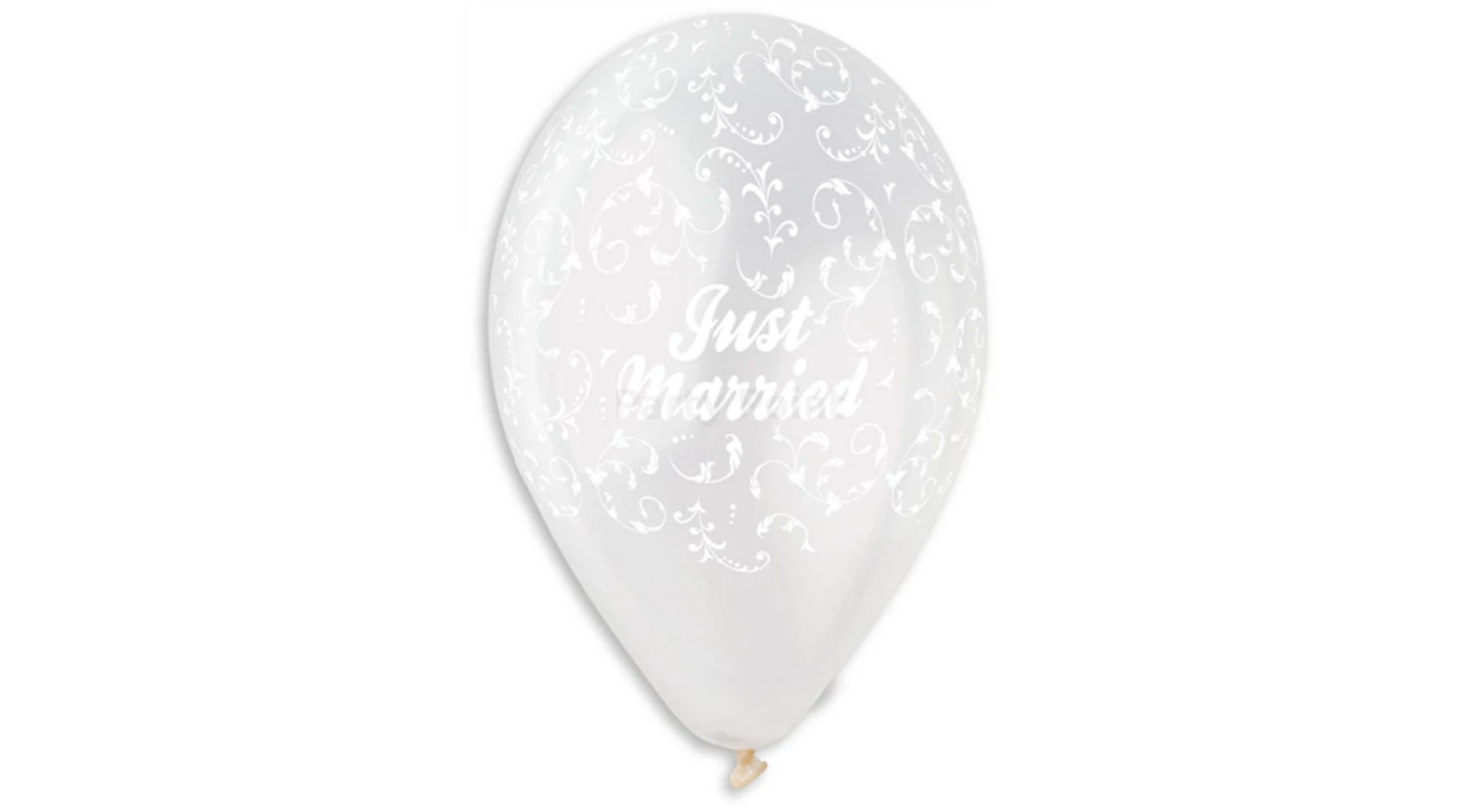 30 cm-es indás Just Married átlátszó gumi léggömb 10 db/cs.