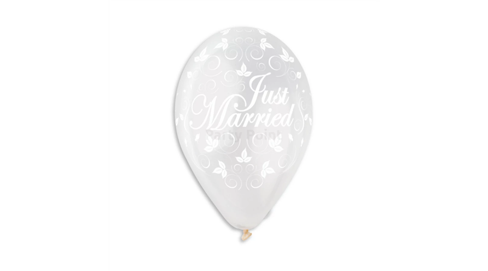 30 cm-es Just Married indás metál printelt gumi léggömb 100 db/cs.