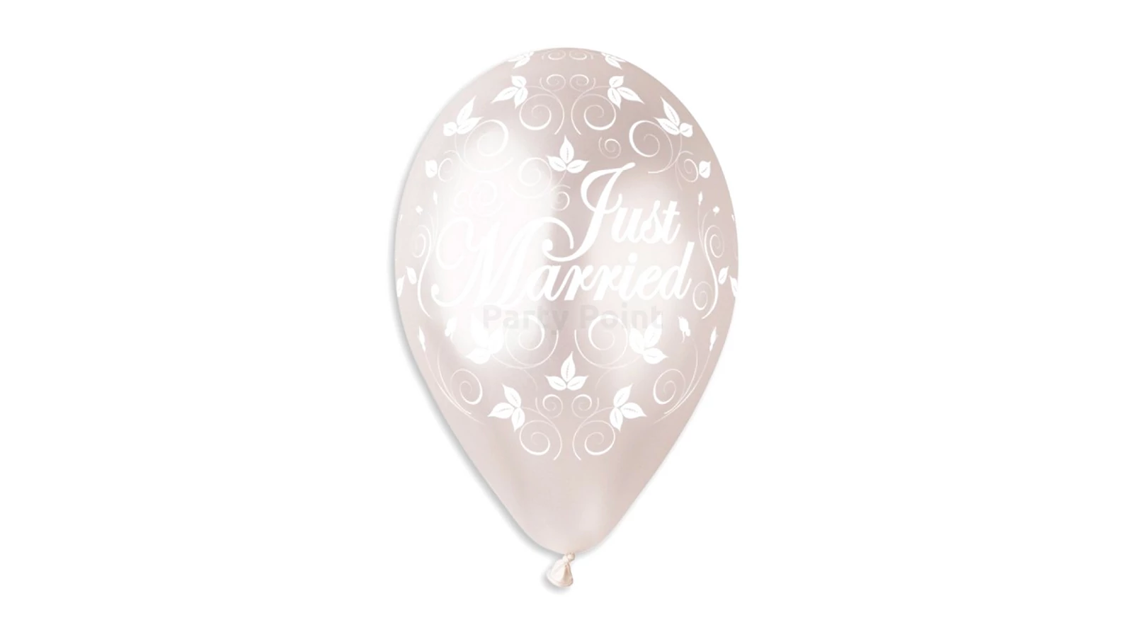 30 cm-es Just Married indás metál printelt léggömb 10 db/cs. Tedd hangulatossá az esküvői dekorációt ezzel az alkalomhoz illő, metál, printelt gumi lufival. Válassz mellé más egyszínű vagy printelt lufikat kiegészítésként! Héliummal és levegővel is tölthető.