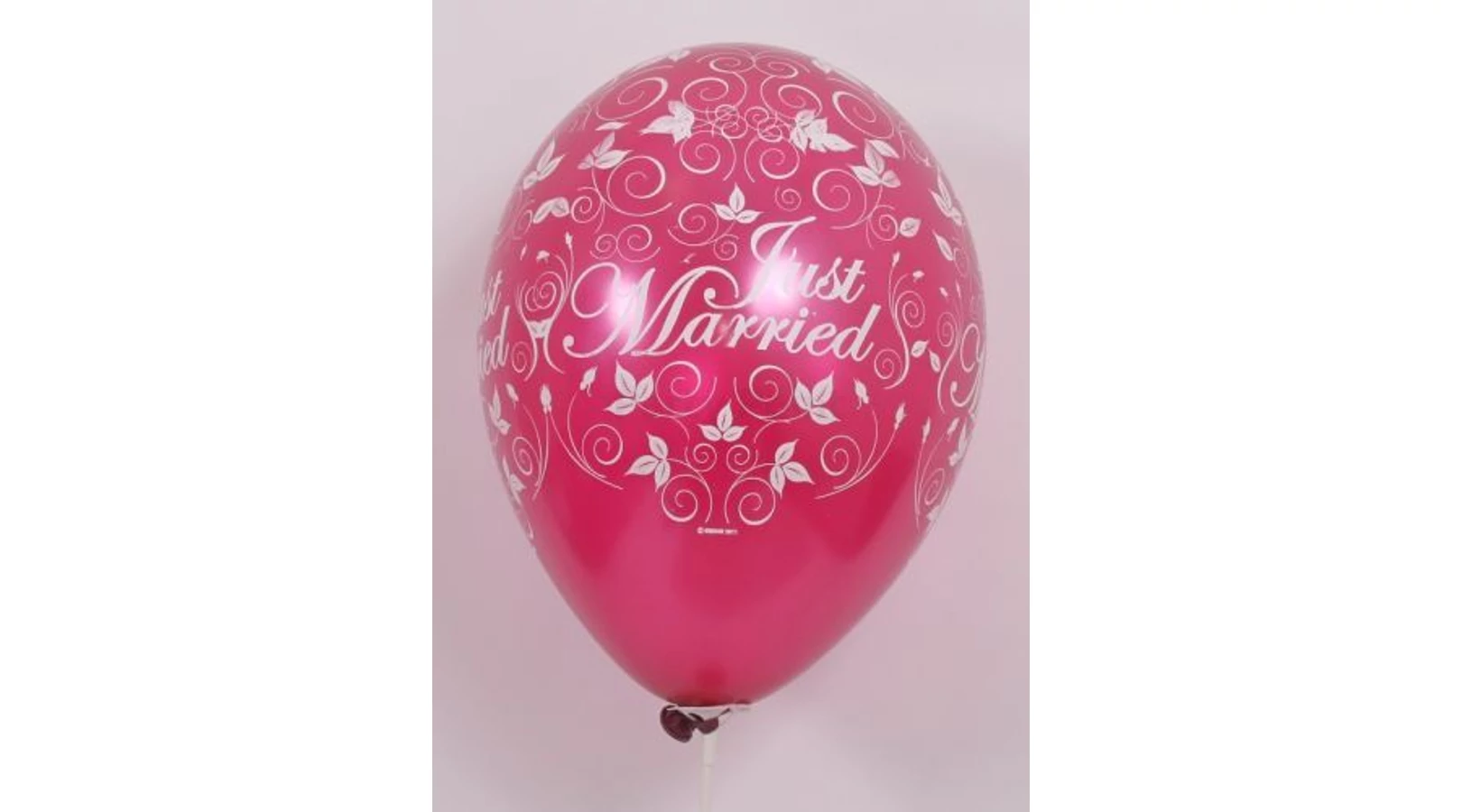 Esküvői alkalmak romantikus dekorációs eleme lehet ez a gyöngyház színű, Just Married feliratos, bordó színű gumi lufi, mely kiegészíthető hozzá illő fólia lufikkal, girlandokkal, lampionokkal is! A léggömb átmérője: 30 cm. Egy csomag tartalma: 10 db lufi