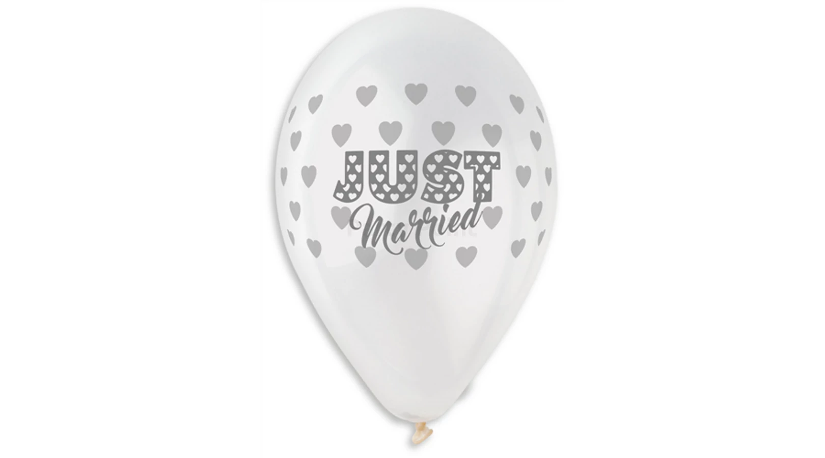 30 cm-es Just Married szíves szürke nyomattal gumi léggömb 10 db/cs.