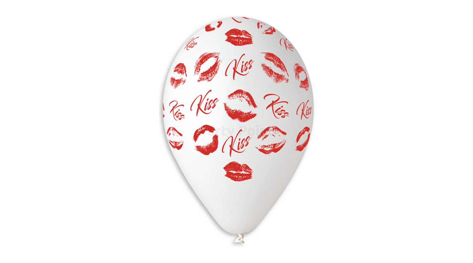 30 cm-es Kiss csókos száj mintás fehér gumi léggömb - 100 db / csomag