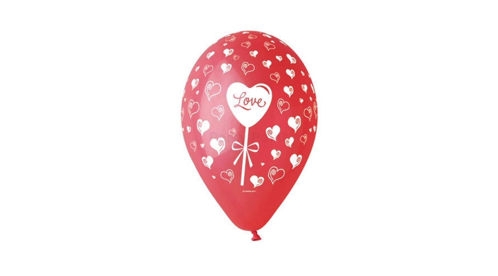 30 cm-es piros színű gumi lufi Valentin napra, 10 db/cs.