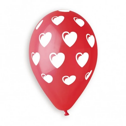 30 cm-es teli szív printelt lufi 10 db/cs. Esküvői, Valentin napi dekorációk hangulatos díszítő eleme lehet ez a piros, teli szíves gumi lufi. Kiegészíthető egyszínű piros vagy fehér gumi lufikkal, vagy hozzá illő fólia léggömbökkel is. Levegővel és héliummal is tölthető.