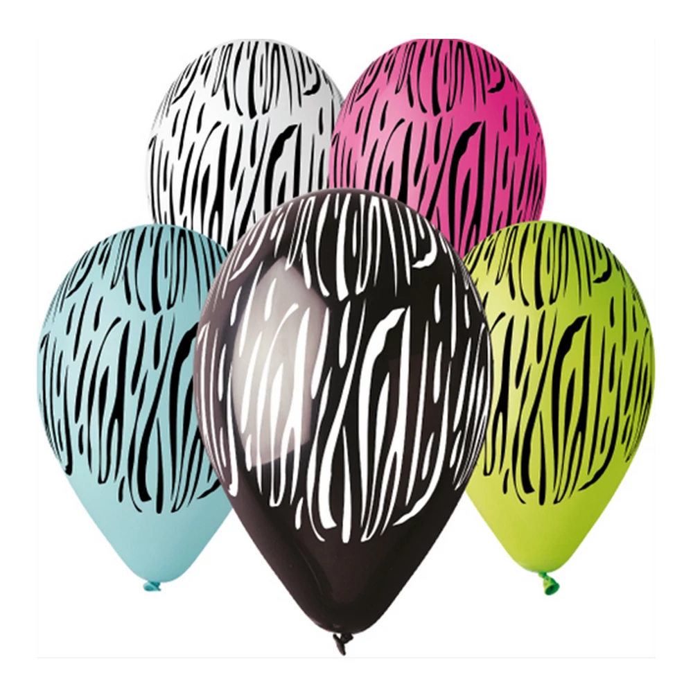 30 cm-es zebra csíkos printelt gumi léggömb - 100 db / csomag