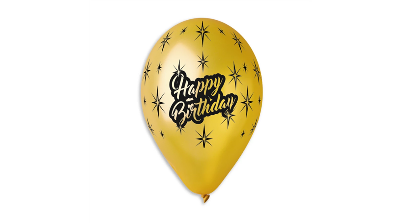 33 cm-es arany színű HB csillagos metál printelt gumi léggömb 10 db/cs.