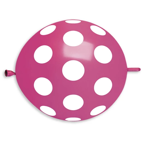 33 cm-es bóbitás pöttyös fukszia gumi léggömb - 100 db / csomag