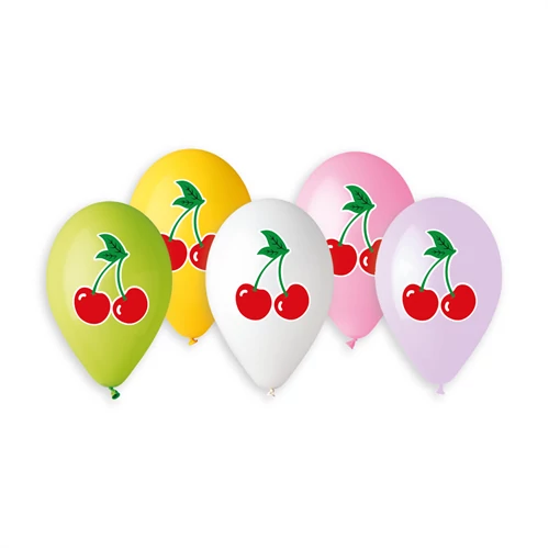 33 cm-es cseresznyés printelt gumi léggömb - 10 db / csomag