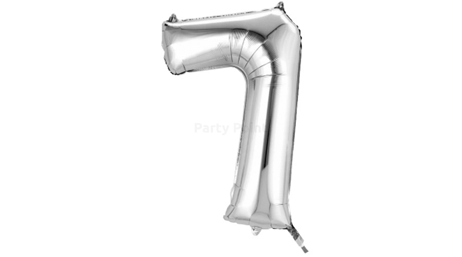7-es ezüst szám fólia lufi 22 x 35 cm. Kiváló ajándék és dekoráció ez az impresszív, szám alakú lufi, elegáns, ezüst színben. Válassz mellé másik, szám alakú lufit, és rakd ki a kívánt évszámot! A dekorációt kiegészítheted alkalomhoz illő gumi lufikkal, feliratokkal vagy girlandokkal. Levegővel tölthető.