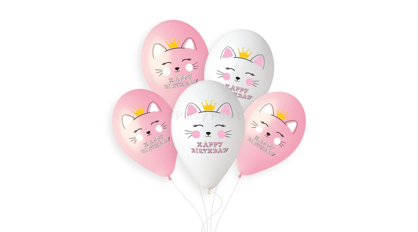 33 cm-es Happy Birthday Cat princess pink-fehér gumi léggömb - 50 db / csomag