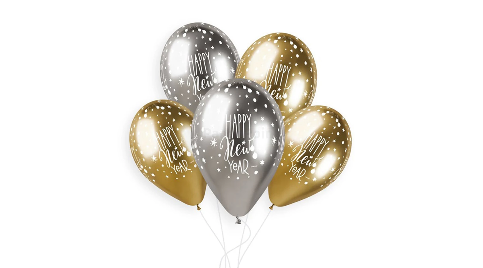 Dobd fel az újévi party, ezzel az elegáns, arany-ezüst színű Happy New Year gumi lufival. Kombinálhatod sima egyszínű vagy printelt léggömbökkel. Héliummal és levegővel is tölthető.