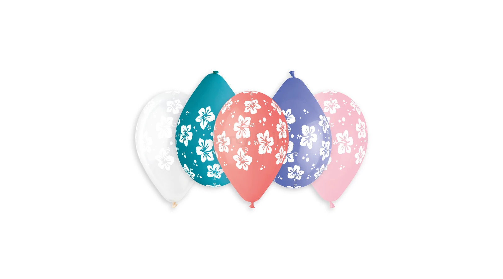 33 cm-es fehér hibiszkusz mintás gumi lufi, 10 db/csomag.