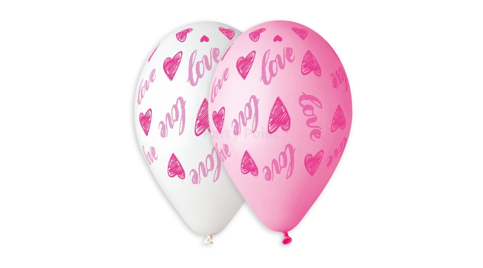33 cm-es "love" feliratú szíves printelt gumi lufi, 50 db/csomag.