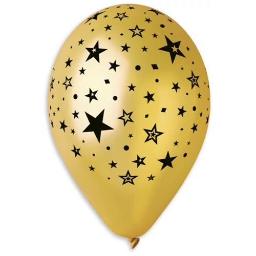 33 cm-es metál arany színű csillagos printelt gumi léggömb - 10 db / csomag
