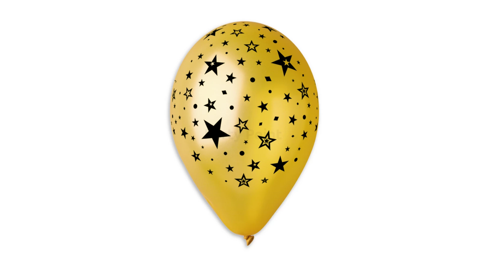 33 cm-es metál arany színű csillagos printelt gumi léggömb, 100 db/csomag.