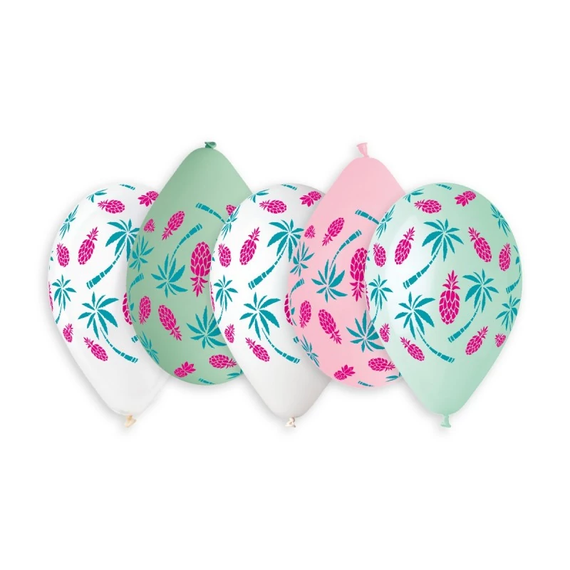 33 cm-es pálmafa és ananász printelt gumi léggömb - 50 db / csomag