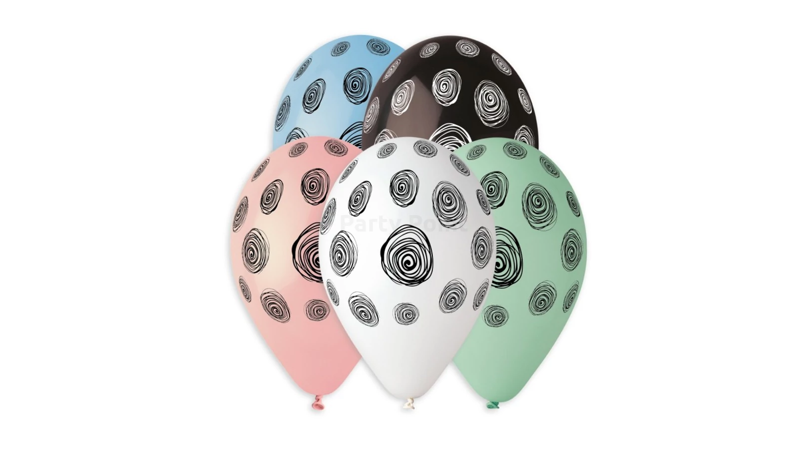 33 cm-es Spirál minták printelt gumi léggömb 10 db / csomag