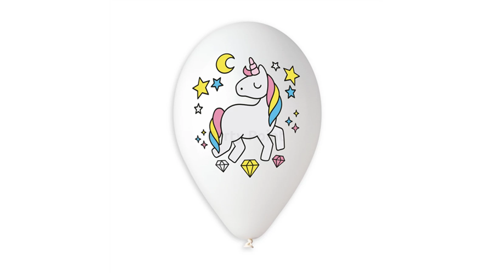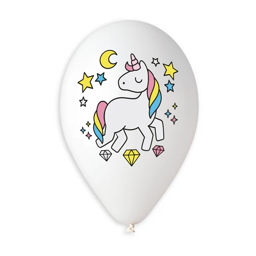 33 cm-es unikornis fehér printelt gumi léggömb 10db/cs.