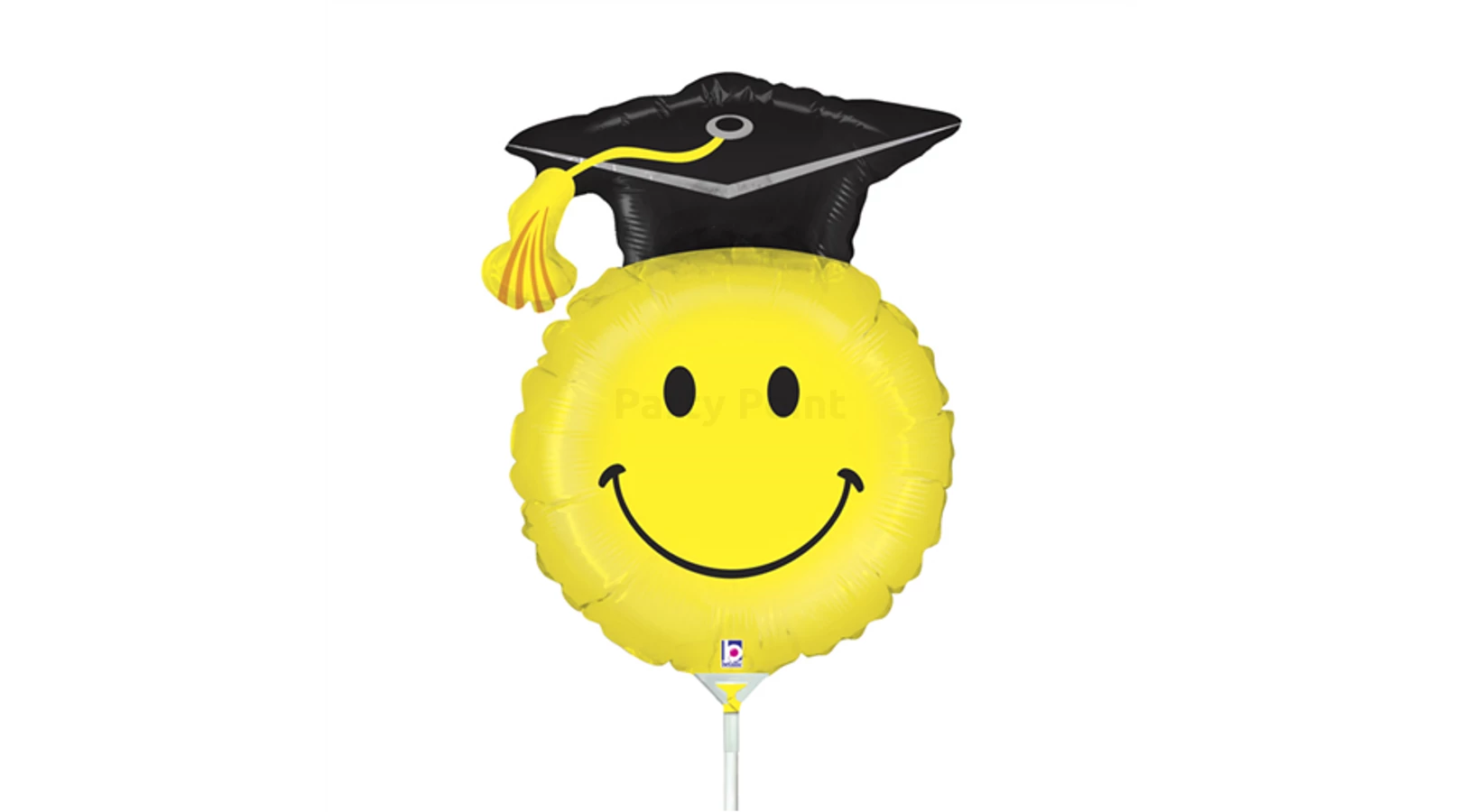 Smiley ballagó sapkában forma fólia lufi. Levegővel tölthető. Hegesztést igényel. Party Point üzletünkben történő személyes átvétel esetén, vagy Party Point weboldalon leadott megrendelés esetén a lufikat levegővel töltve, hegesztve, pálcával szállítjuk. Csomagolatlan.Méret: 36 cm