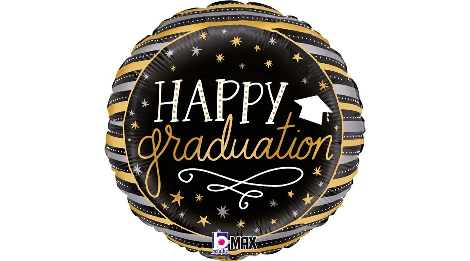 45 cm-es arany-fekete csíkos Happy graduation fólia lufi