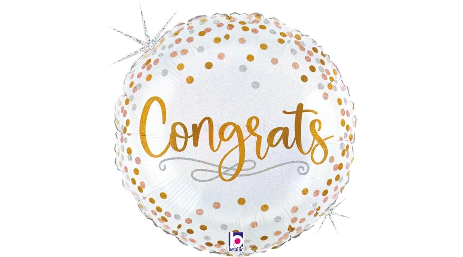 45 cm-es arany-rosegold konfettis Congrats fólia lufi