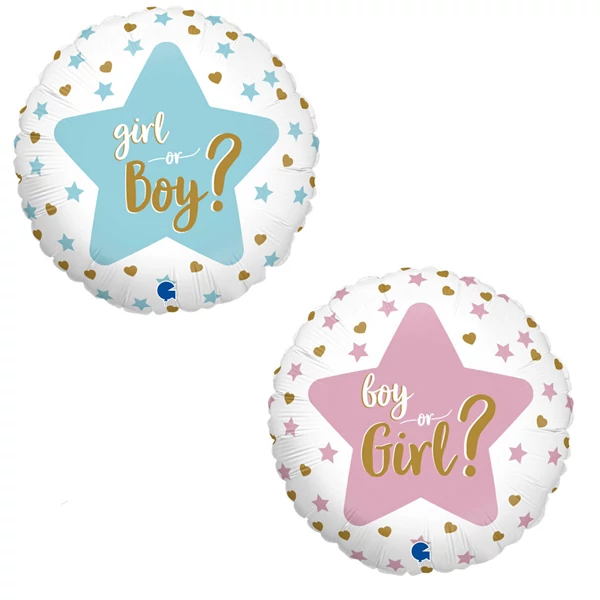 45 cm-es boy or girl fólia lufi. A születendő gyermek nemét különleges módon szeretnéd megtudni és megünnepelni szeretteiddel? Rendezz egy baba nemét felfedő bulit ("Gender Reveal Party"), dekoráld a party helyszínét boy or girl? feliratos lufikkal és tudjátok meg mind egyszerre, hogy milyen nemű gyermek érkezik a családba. Kombinálhatod rózsaszín vagy kék gumi lufikkal is. A lufi mérete: 45 cm. Héliummal és levegővel is tölthető, önzáró szeleppel rendelkezik.