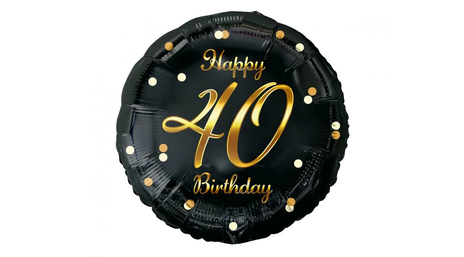 45 cm-es Happy 40 Birthday fekete arany elegáns fólia léggömb
