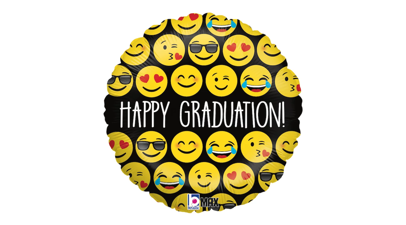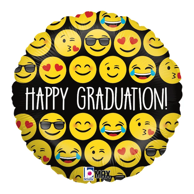 46 cm-es Happy Graduation! feliratú, Emoji mintás kerek fólia lufi