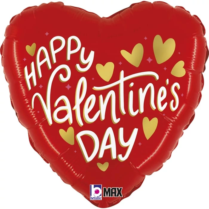 45 cm-es Happy Valentine day arany szívekkel -  szív fólia lufi