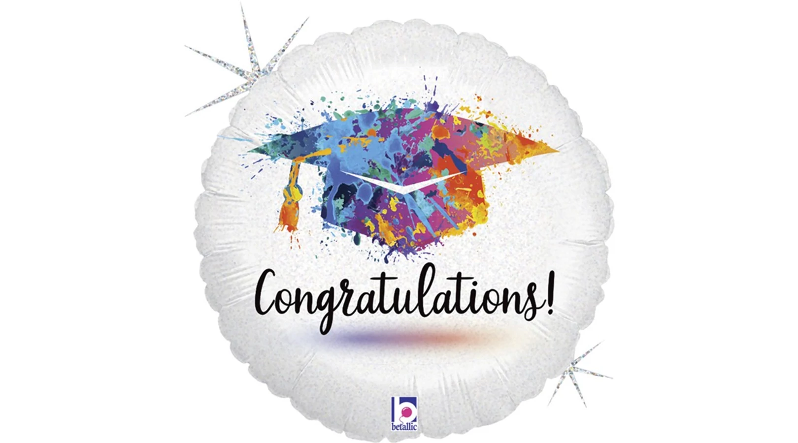 Ballagásra, diplomaosztóra szuper ajándék ez a hologramos színes, Congratulations feliratos fólia lufi. Levegővel és héliummal is fújható.