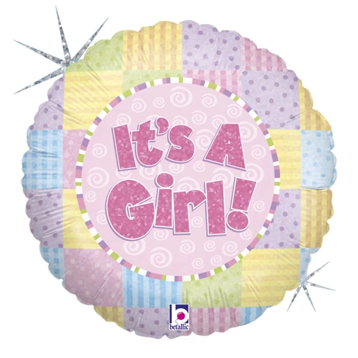 45 cm-es hologramos It's a Girl patchwork mintás fólia lufi. Babaváróra tökéletes dekoráció vagy akár ajándék is lehet ez az "It's A Girl" feliratos fólia lufi. Kombinálhatod fehér, ezüst vagy halvány rózsaszín lufikkal is. Héliummal és levegővel tölthető, önzáró szeleppel rendelkezik. Mérete: 45 cm.