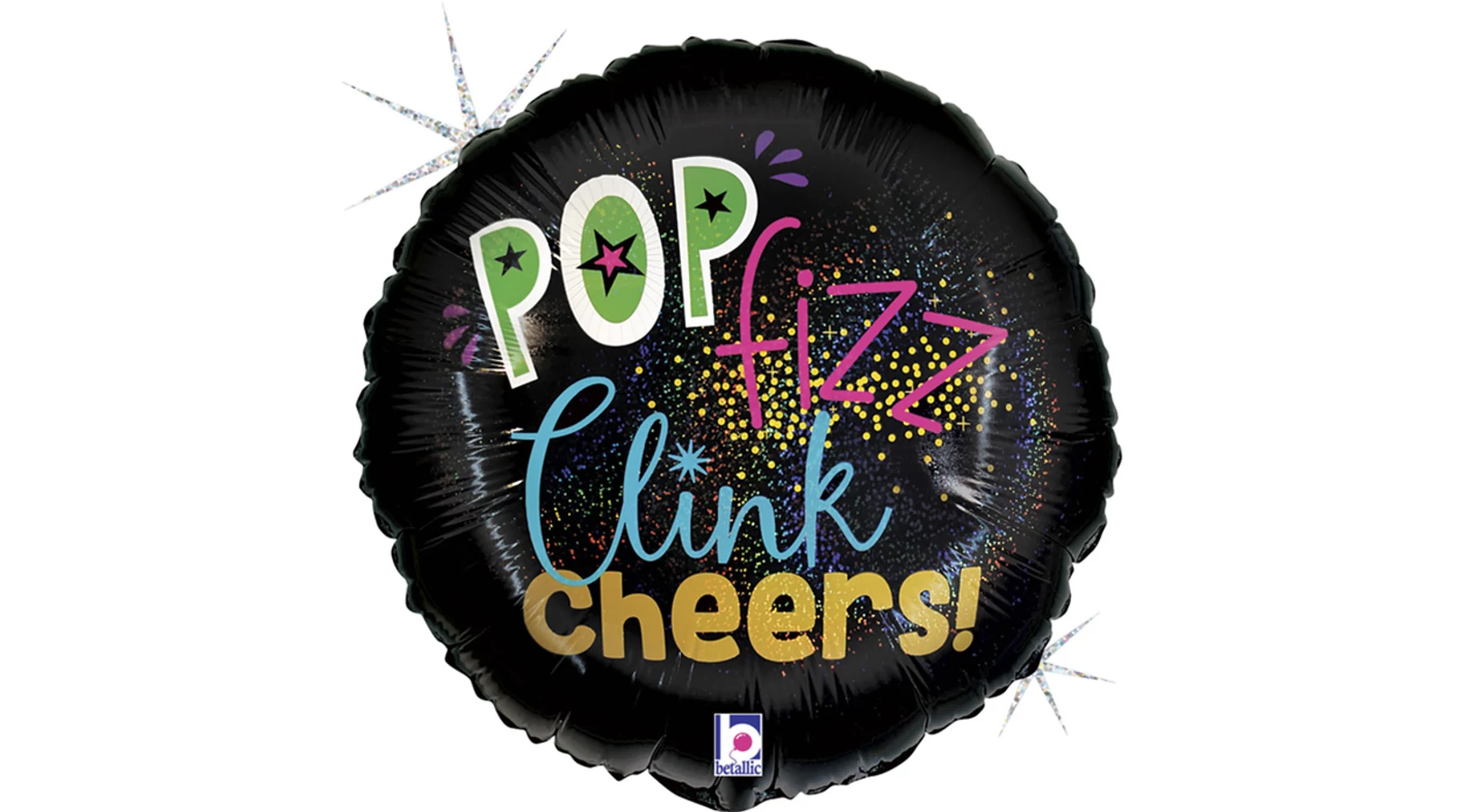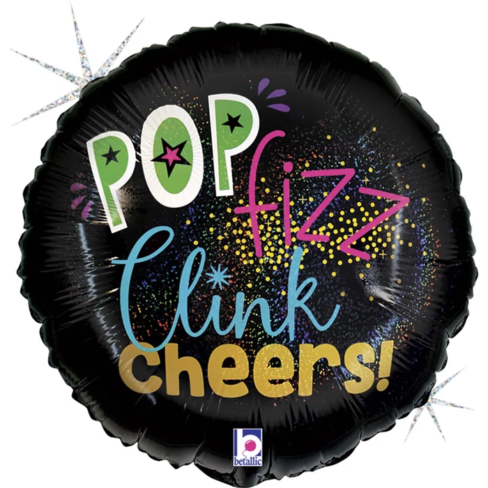 45 cm-es hologramos "Pop-Fizz-Clink-Cheers" fólia lufi. Zárd az évet, és köszöntsd az újat ezzel az elegáns hologramos fólia lufival. Tölthető levegővel és héliummal egyaránt, mérete 45 cm.