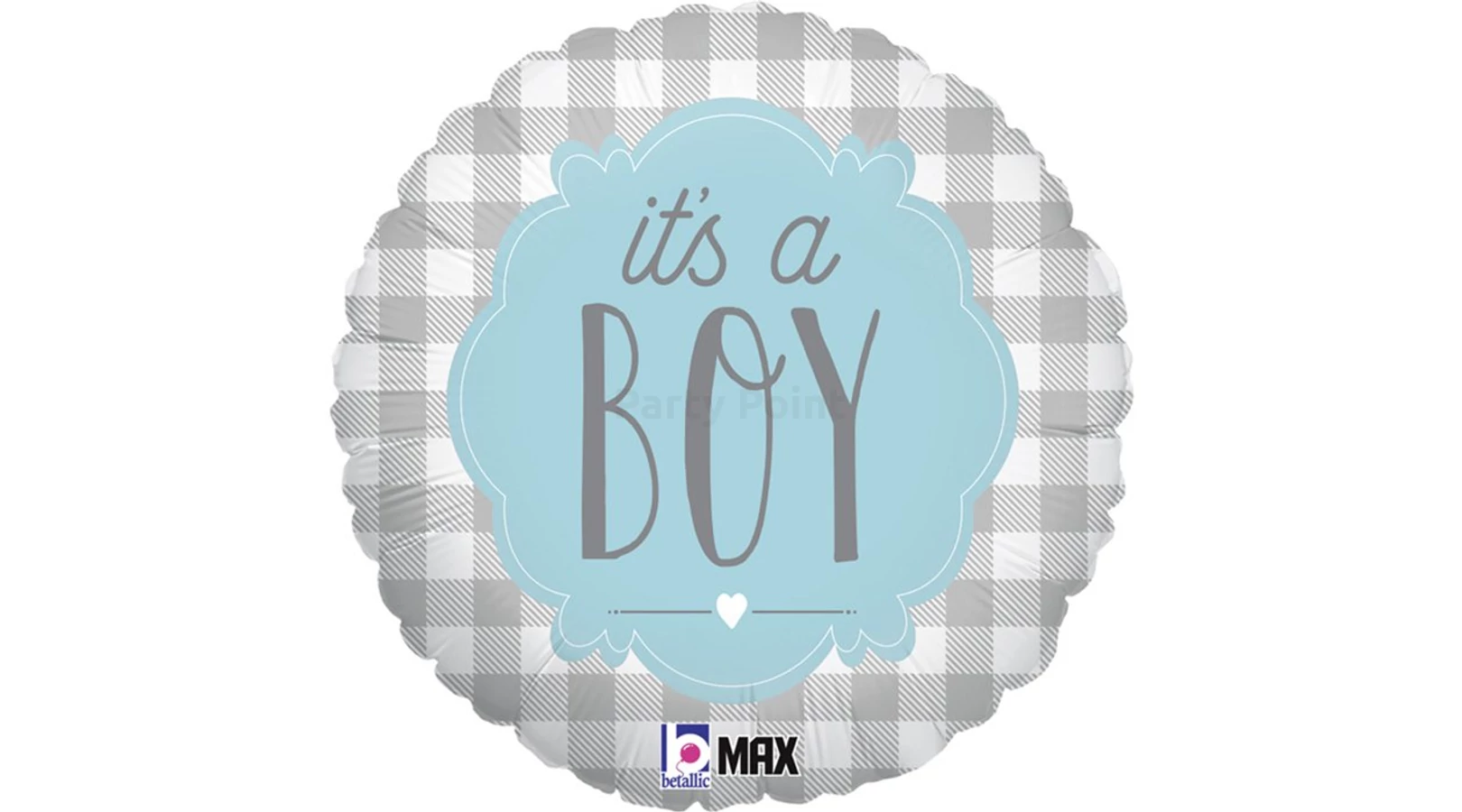 45 cm-es It's A Boy kockás fólia lufi. Babaváróra tökéletes dekoráció vagy akár ajándék is lehet ez az "It's A Boy" feliratos fólia lufi. Kombinálhatod fehér, ezüst vagy halványkék lufikkal is. Héliummal és levegővel tölthető, önzáró szeleppel rendelkezik. Mérete: 45 cm.