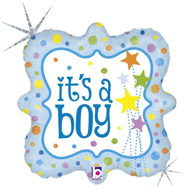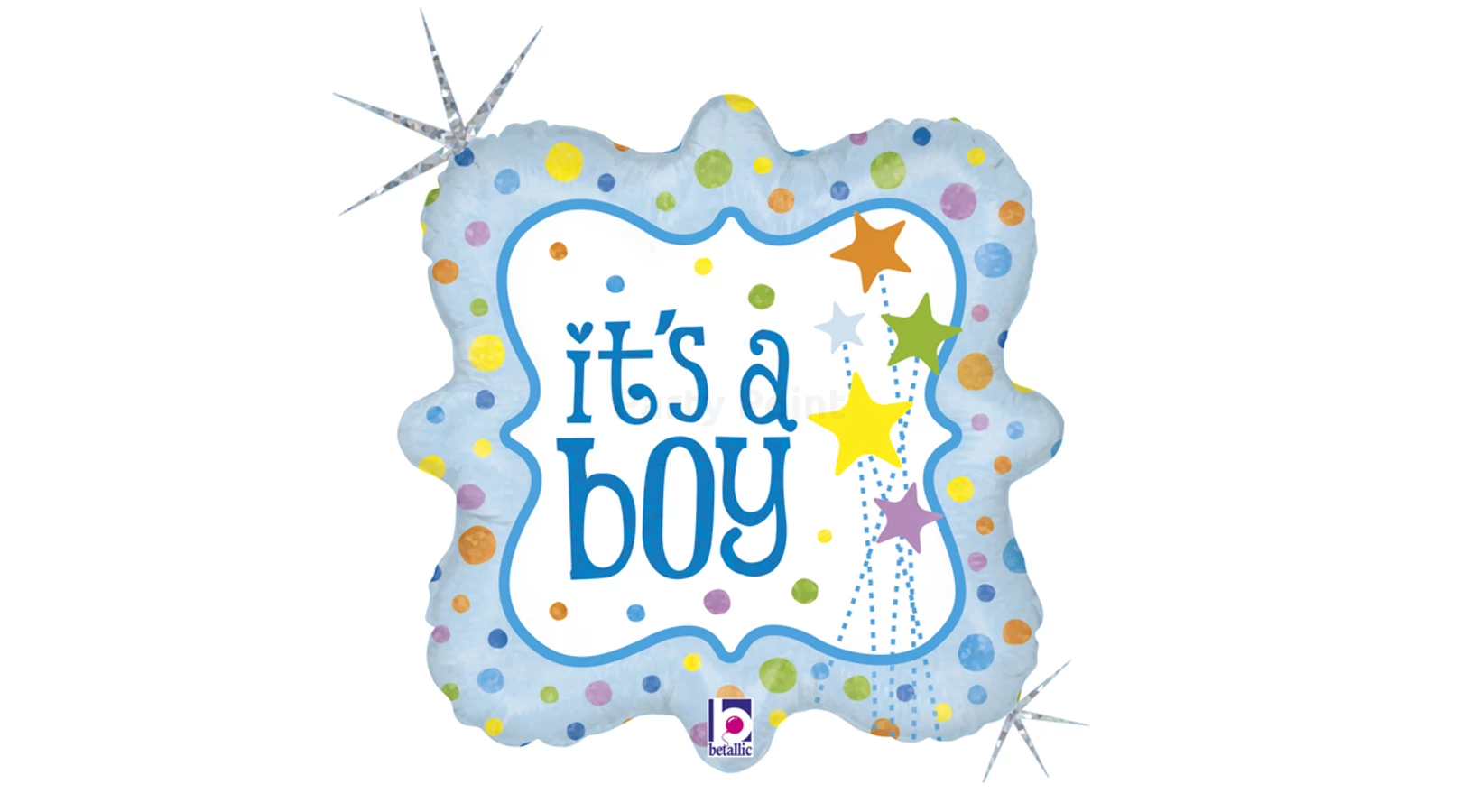 Ezt a kék-fehér fólia lufit "It's a boy" felirattal kisfiús babaváró bulira ajánljuk.