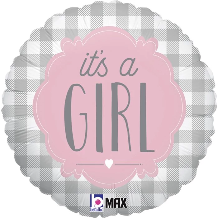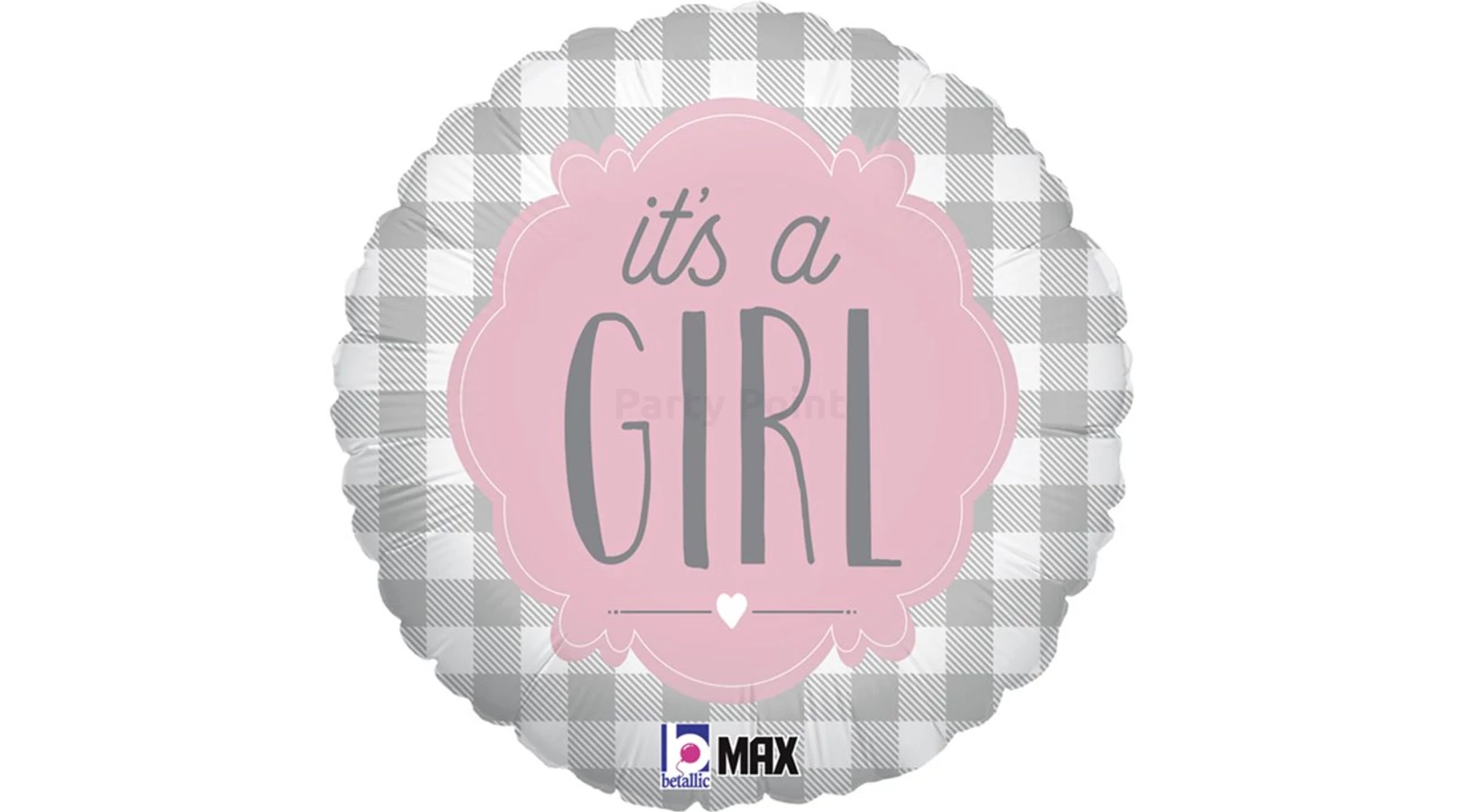 45 cm-es It's A Girl kockás fólia lufi. Babaváróra tökéletes dekoráció vagy akár ajándék is lehet ez az "It's A Girl" feliratos fólia lufi. Kombinálhatod fehér, ezüst vagy halvány rózsaszín lufikkal is. Héliummal és levegővel tölthető, önzáró szeleppel rendelkezik. Mérete: 45 cm.