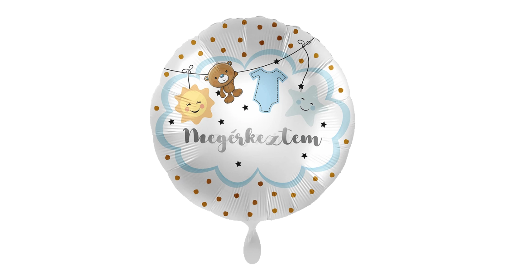 45 cm-es Megérkeztem feliratos világoskék fólia lufi