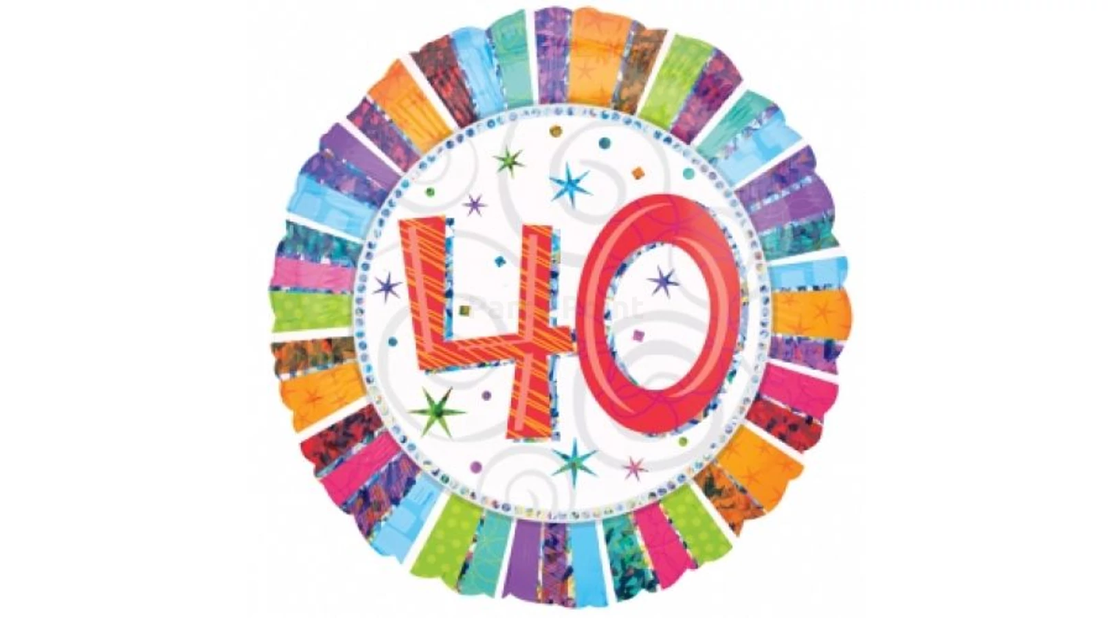 Csomagolt. 45 cm-es Radiant Happy Birthday 40 fólia lufi. Lepd meg az ünnepeltet a 40. születésnapján ezzel a vidám, színes, számozott fólia léggömbbel. Kiegészítésképp válassz mellé tréfás, számozott party szemüveget, vagy kitűzőt. Önzáró szeleppel rendelkezik, héliummal és levegővel is tölthető.