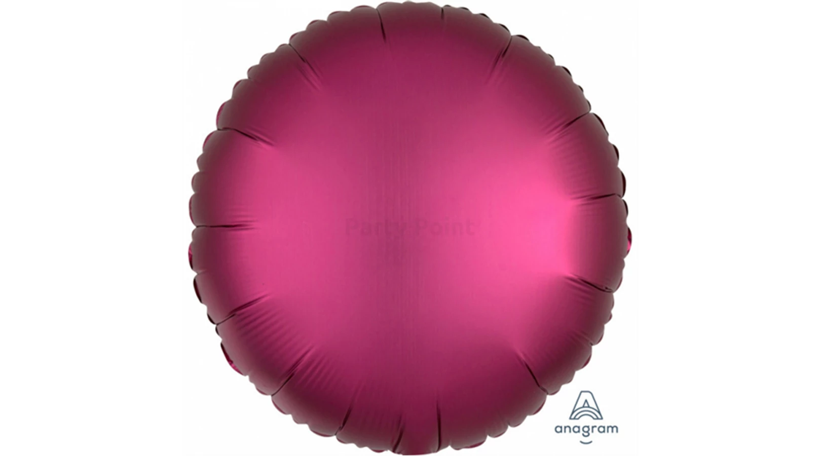 Satin Lux gránátalma kerek fólia lufi / AnagramÖnzáró szeleppel rendelkezik, felfújható héliummal és levegővel egyaránt.Méret:45 cm-es