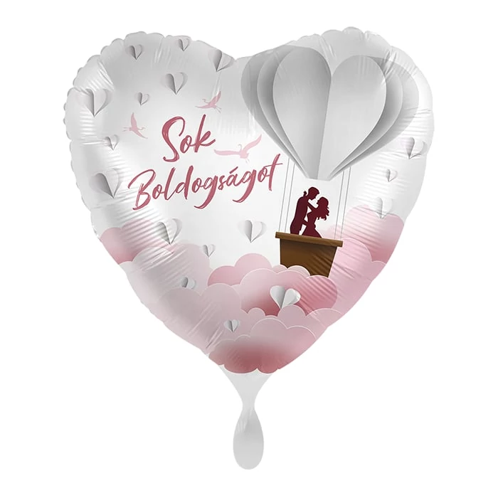 45 cm-es Sok Boldogságot feliratos szív alakú fólia lufi