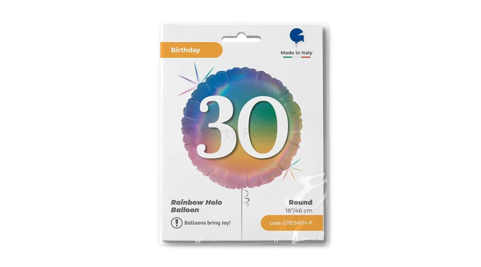 45 cm-es Szivárványos Happy 30 Birthday fólia lufi