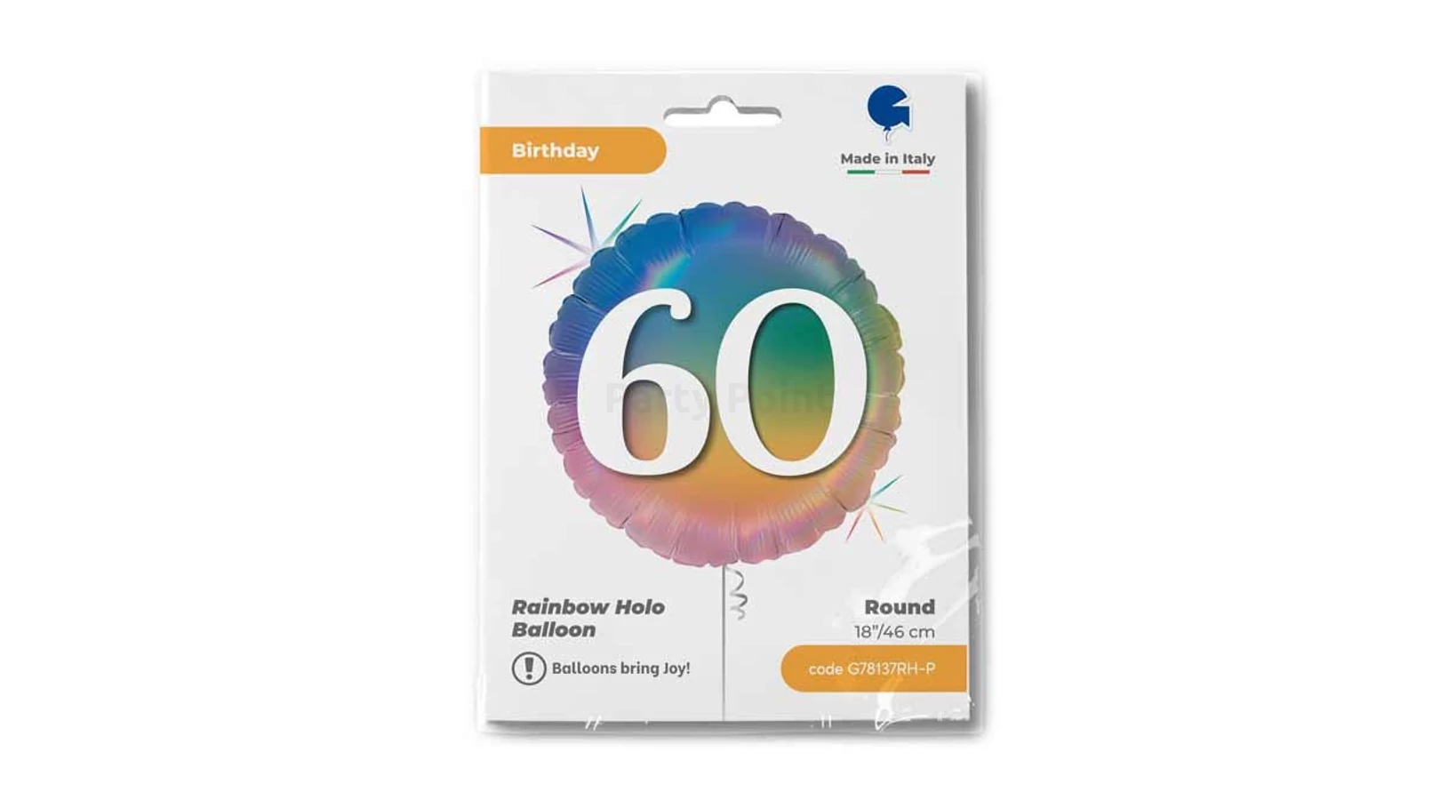45 cm-es Szivárványos Happy 60 Birthday fólia lufi