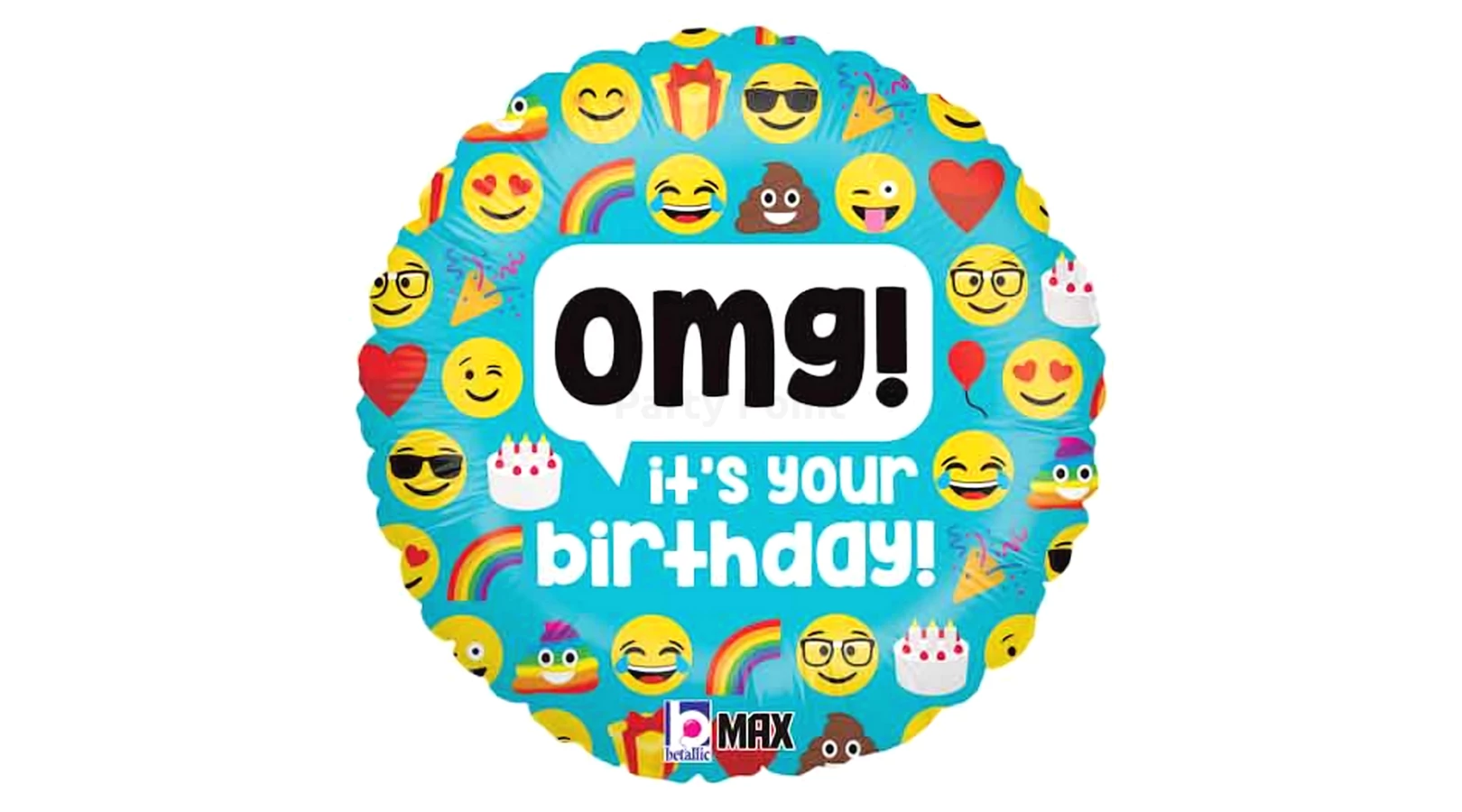 46 cm-es fólia lufi Emoji mintás, OMG! It's your birthday! felirattal