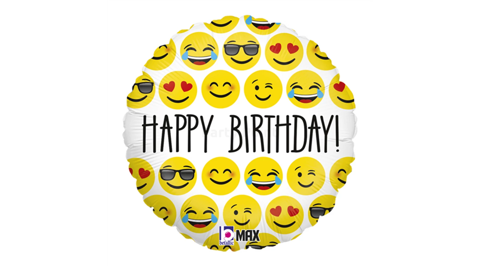 46 cm-es Happy Birthday! Smiley fólia lufi csomagolatlan