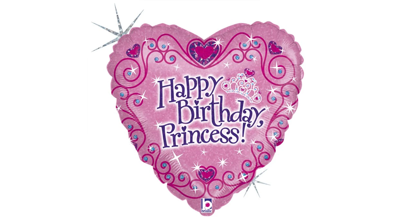 46 cm-es Happy Birthday Princess feliratos, hologrammos fólia lufi
