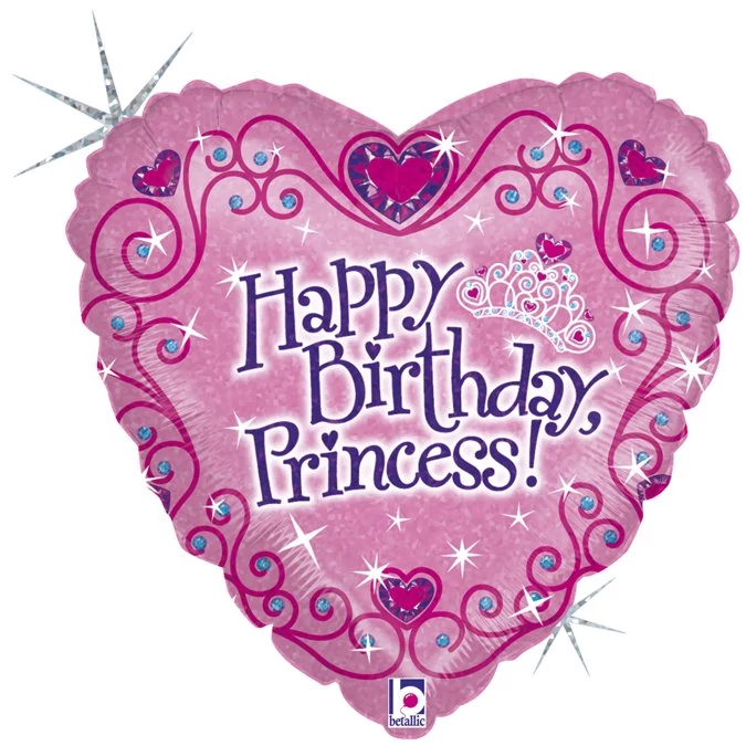 Csomagolt,46 cm-es Happy Birthday Princess feliratos, hologrammos fólia lufi